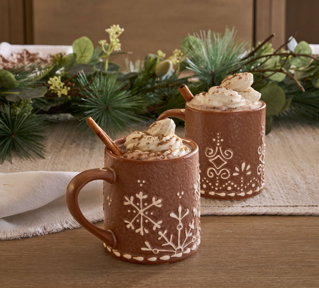 Enjoy your favorite holiday beverages in style with the Gingerbread Stoneware Mugs. This set of two mugs features a charming design that complements your festive table settings. Their sturdy construction ensures they’re perfect for cozy hot chocolates or mulled cider during chilly nights [3].